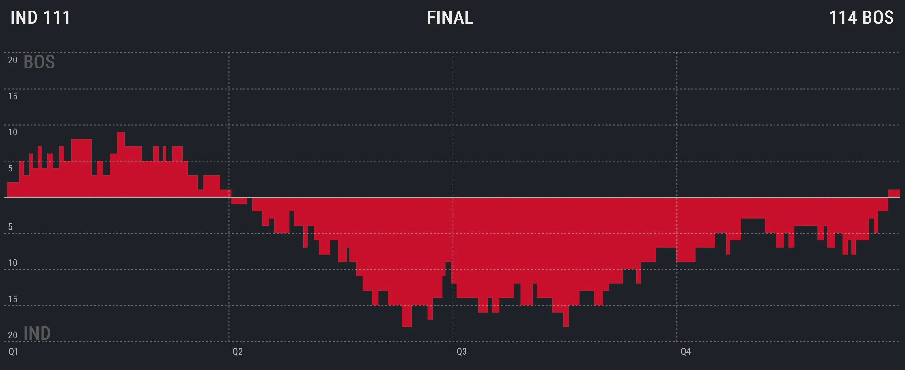 That put the Pacers up by eight with 2:38 to go. However, they failed to get stops late. Over the final four minutes, the Celtics scored on eight of their final nine possessions.