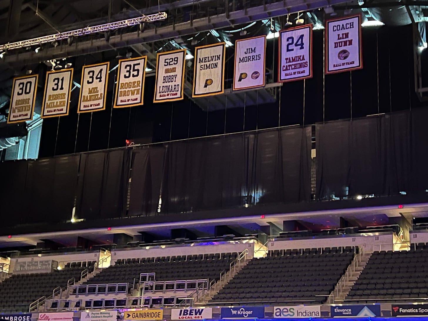 His banner becomes the 10th hung. Five players, two championship-winning coaches, the Simon brothers, and Jim Morris — which was added in mid-August after his passing.