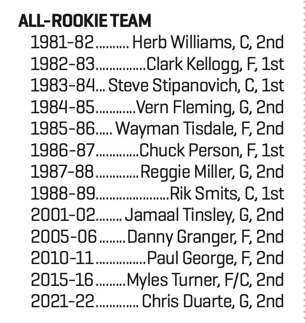 The Pacers’ selection at No. 6 in the 2022 NBA Draft was one of the top five rookies all season so this was likely outcome. For most of the season, he was second only to Orlando’s Paolo Banchero.