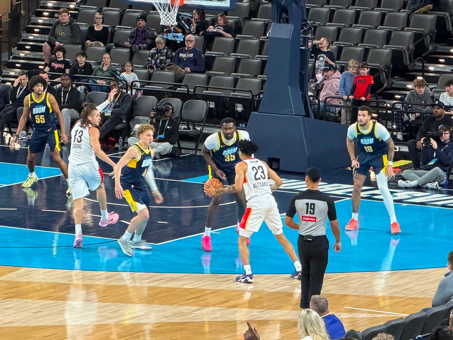 Pacers executives Kevin Pritchard, Chad Buchanan, and Ted Wu, along with head coach Rick Carlisle, were all courtside for the Boom game on Feb. 1.