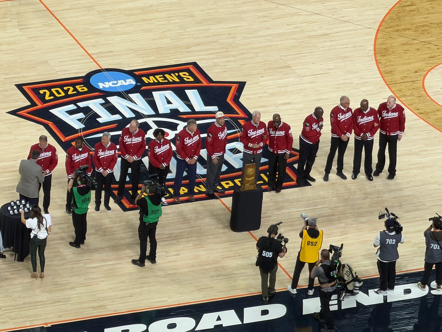 The NCAA honored Indiana’s 1976 men’s basketball team at center court, celebrating the 50th anniversary of its perfect season — still the last in men’s college basketball.