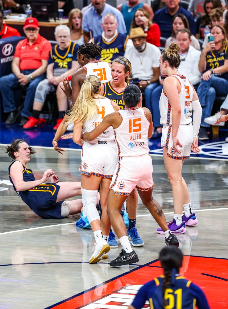 Then, the sequence was escalated when veteran Tina Charles shared what was on her mind, then Marina Mabrey came in and body-checked Clark to the ground.