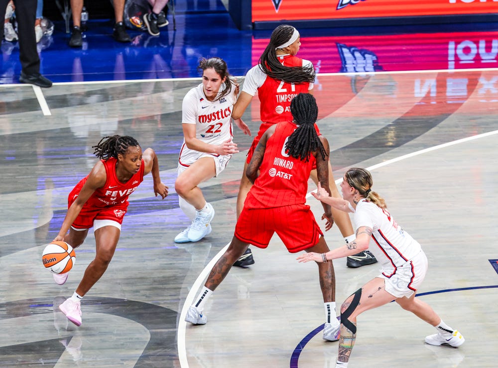 On Sunday afternoon, the Fever trailed by one at the end of the first quarter, but then held the Mystics to 27 points in the second half. They scored 27 points off 22 turnovers — and that was the game.