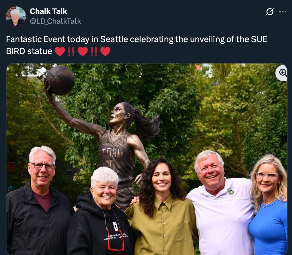 On Sunday, they unveiled a statue of Bird outside Climate Pledge Arena, where her No. 10 jersey has already been retired and hung in the rafters.