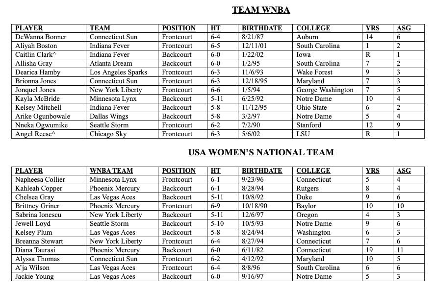 The format of the game is different because it’s an Olympic year. The 12-member team will play 12 WNBA All-Stars.