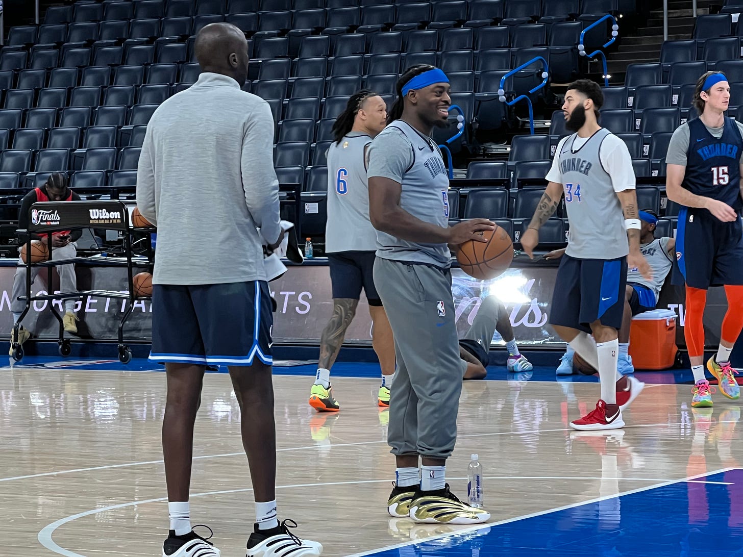 OKLAHOMA CITY — Both the Thunder and Pacers held practice Saturday afternoon at Paycom Center, one day after Tyrese Haliburton’s jumper with 0.3 seconds gave them their first lead — and the win in Game 1.