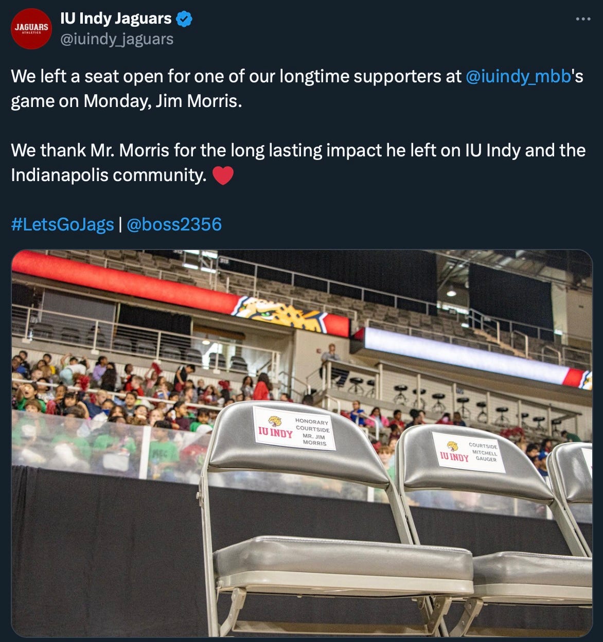 This is a nice touch for IU’s downtown campus. Morris is missed daily by so many in the city and by naming this arena after him, even more sports fans will learn about his contributions to the city, state, and school.