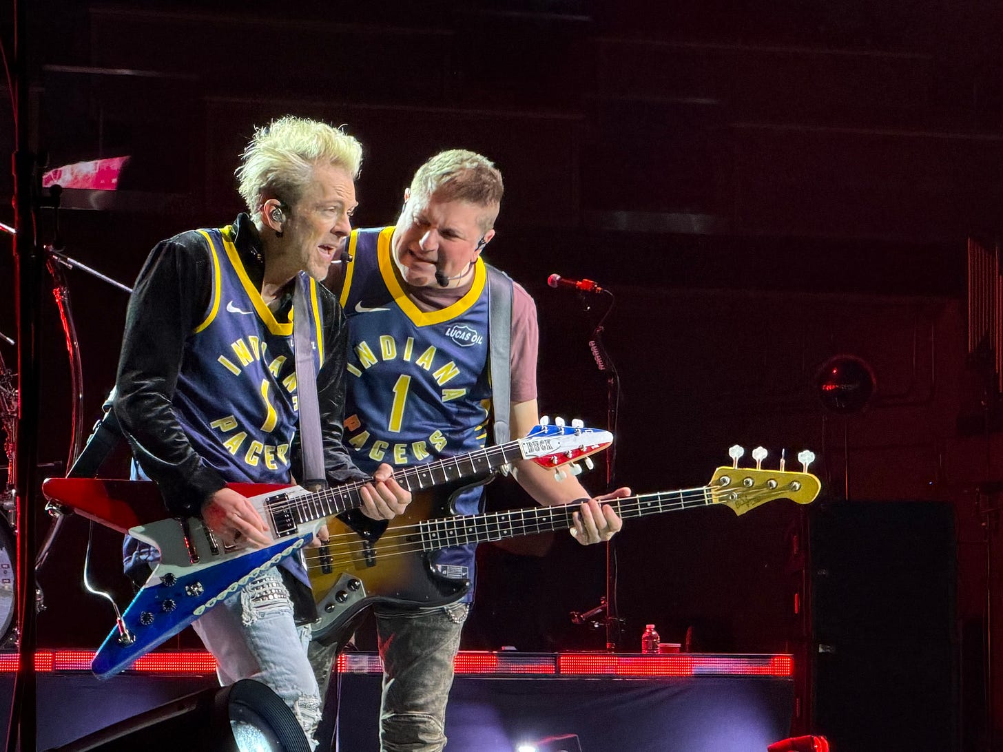 To conclude the tour stop, two of the three members of Rascal Flatts — Joe Don Rooney, and Jay DeMarcus — returned to the stage for an encore in Icon Edition Pacers jersey.