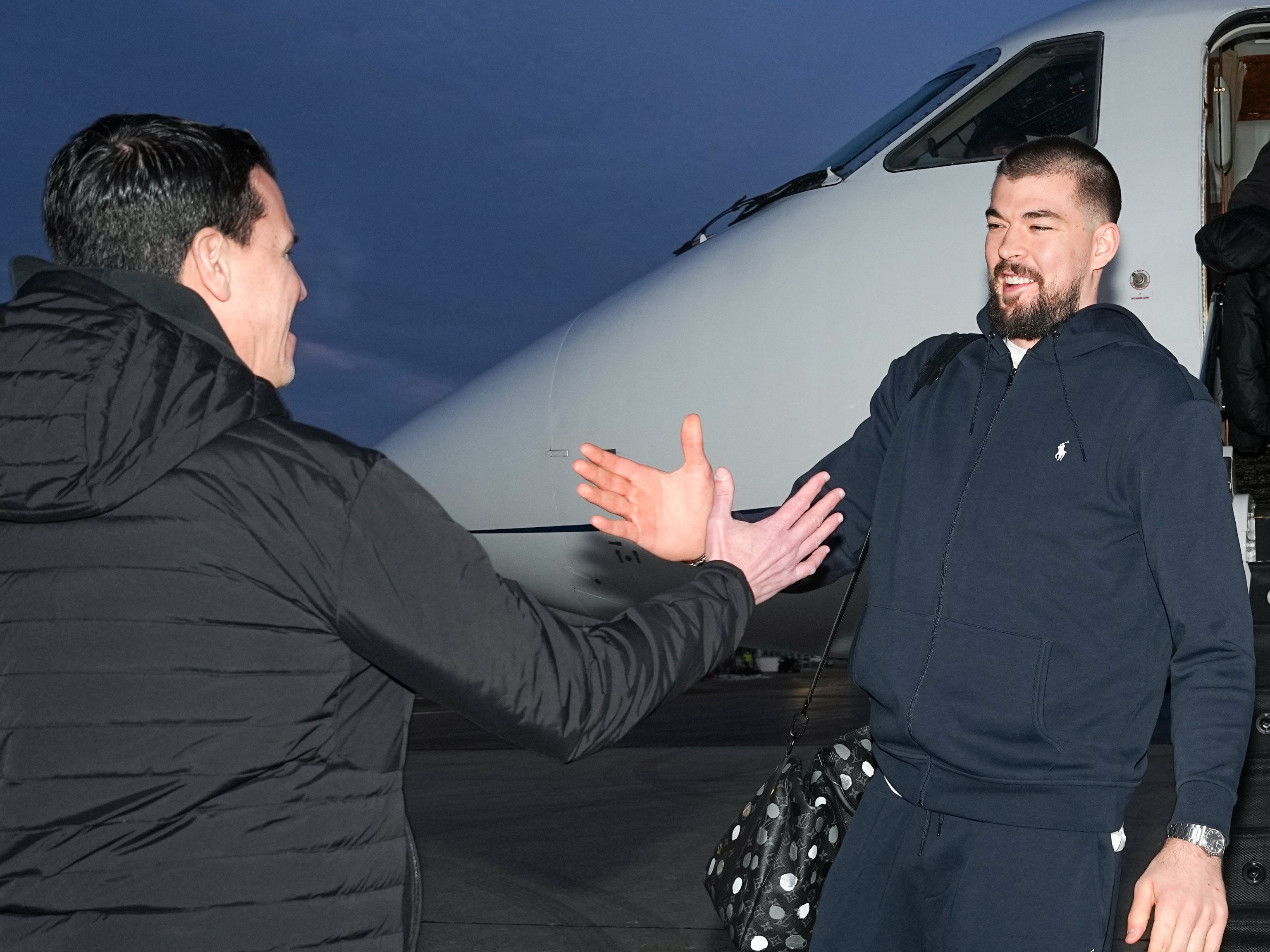 Center Ivica Zubac and guard Kobe Brown arrived in Indianapolis on Sunday aboard a private flight. Upon arrival, Pacers general manager Chad Buchanan was there to greet them and be the first to welcome them to their new team.
