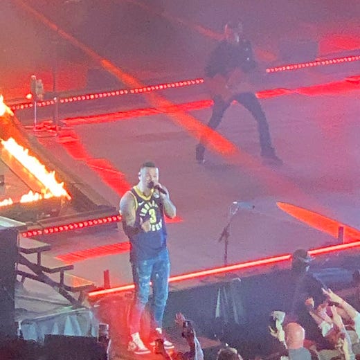 Country artist Kane Brown kicked off his “Blessed & Free Tour” Thursday night in Indianapolis. He sang while wearing a custom navy Pacers jersey — with his favorite number (3) and first name on the back.