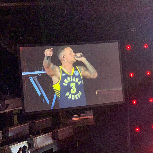 Country artist Kane Brown wears Pacers jersey during Indy concert