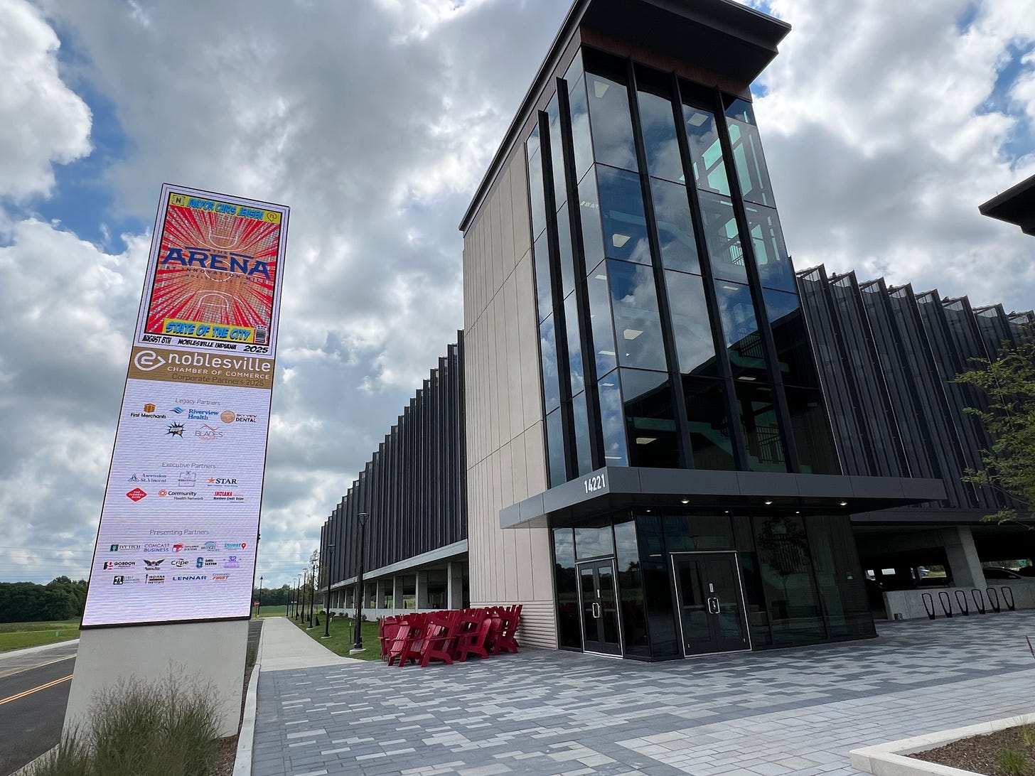 The arena sits in a growing area of Noblesville, surrounded by new development and ample hotel space for visiting teams and fans.