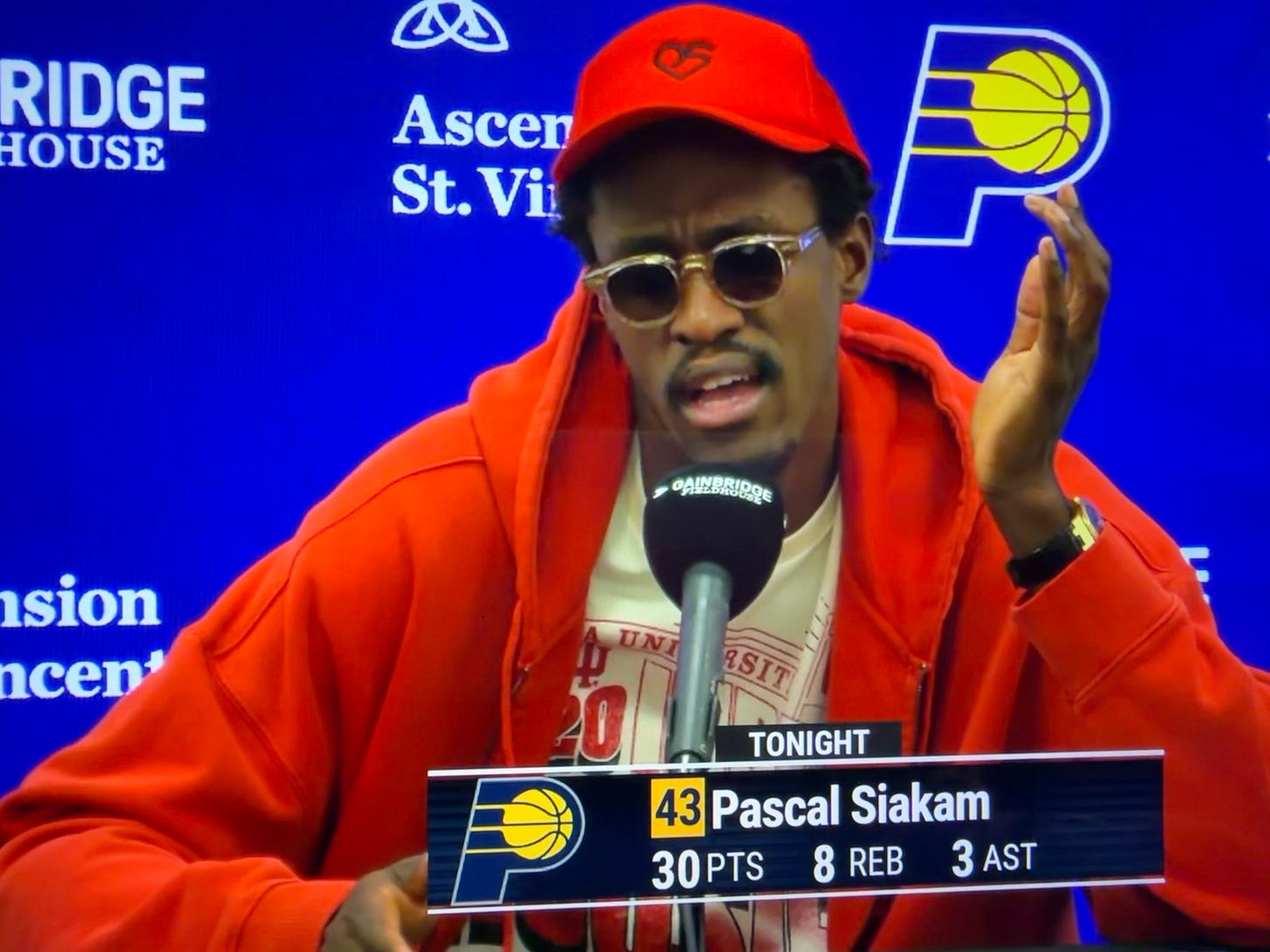Pascal Siakam wore an Indiana University t-shirt to their game on Sunday against Dallas.