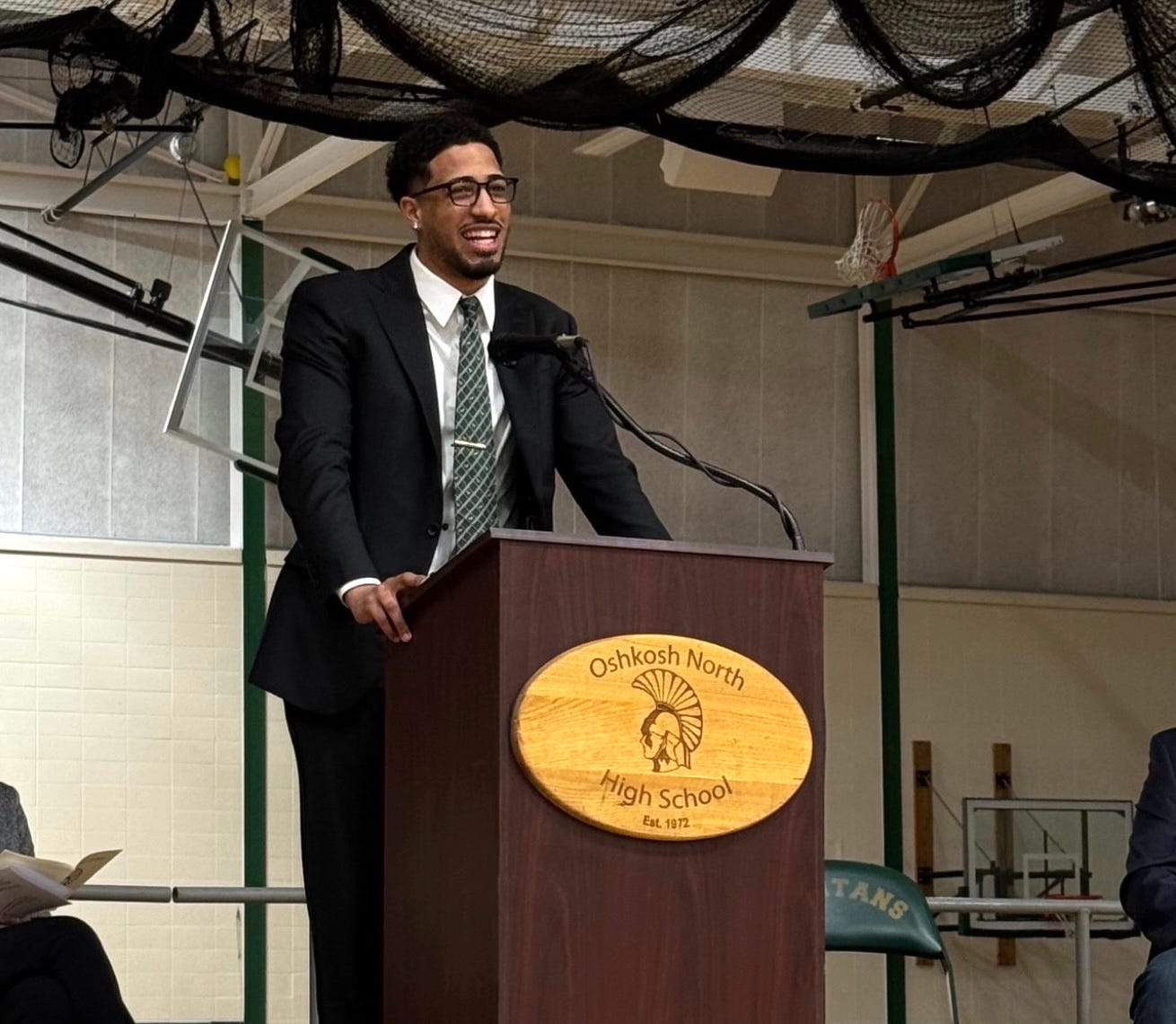 Oshkosh Mayor Matt Mugerauer declared today — Feb. 5, 2026 — “Tyrese Haliburton Day” as the 2018 graduate was celebrated by those from his past and inducted into the Oshkosh North Hall of Fame.