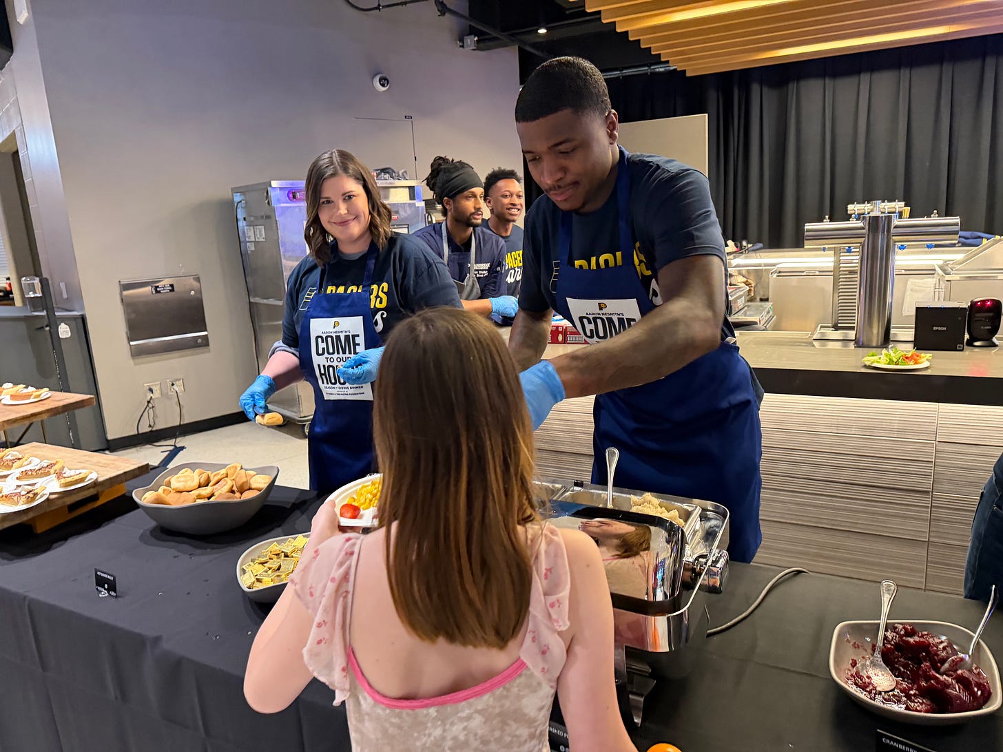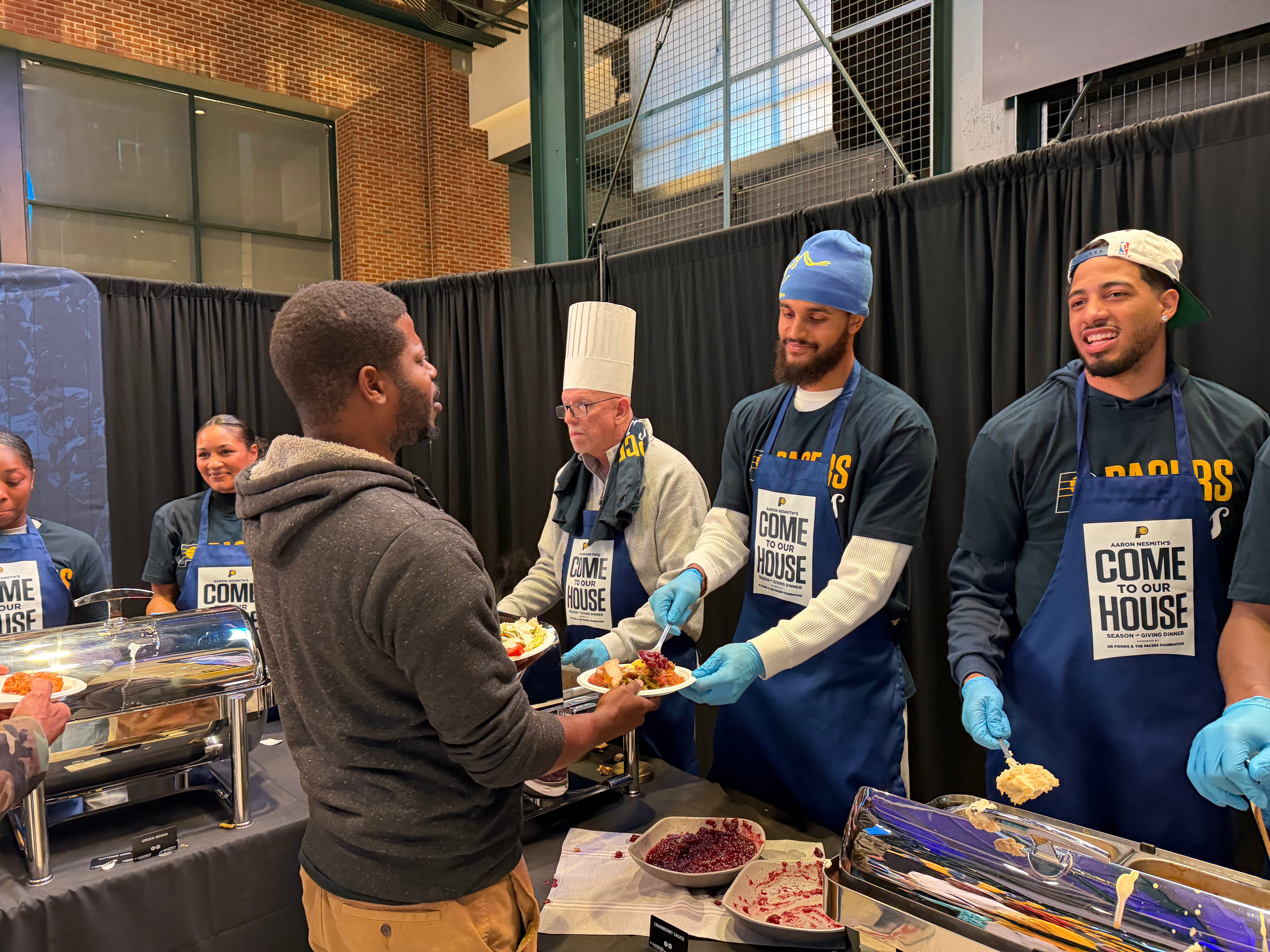 Pacers Sports & Entertainment got a jumpstart on the holiday season Thursday evening, hosting their annual “Come To Our House” Thanksgiving meal for more than 600 individuals in the community experiencing homelessness.