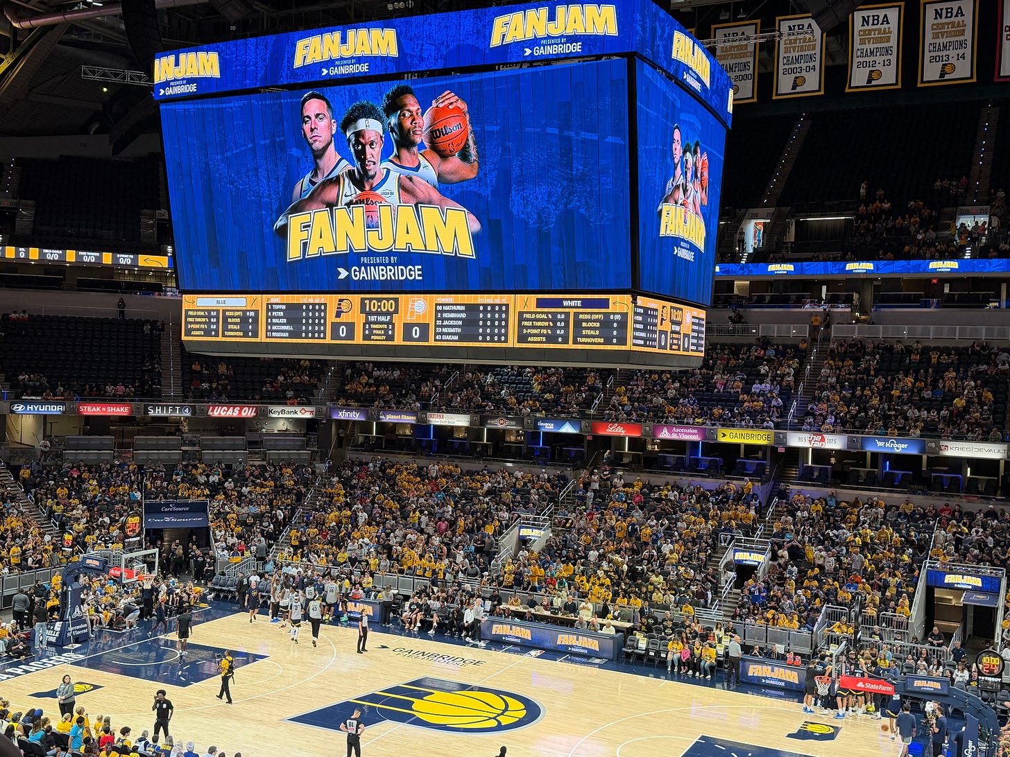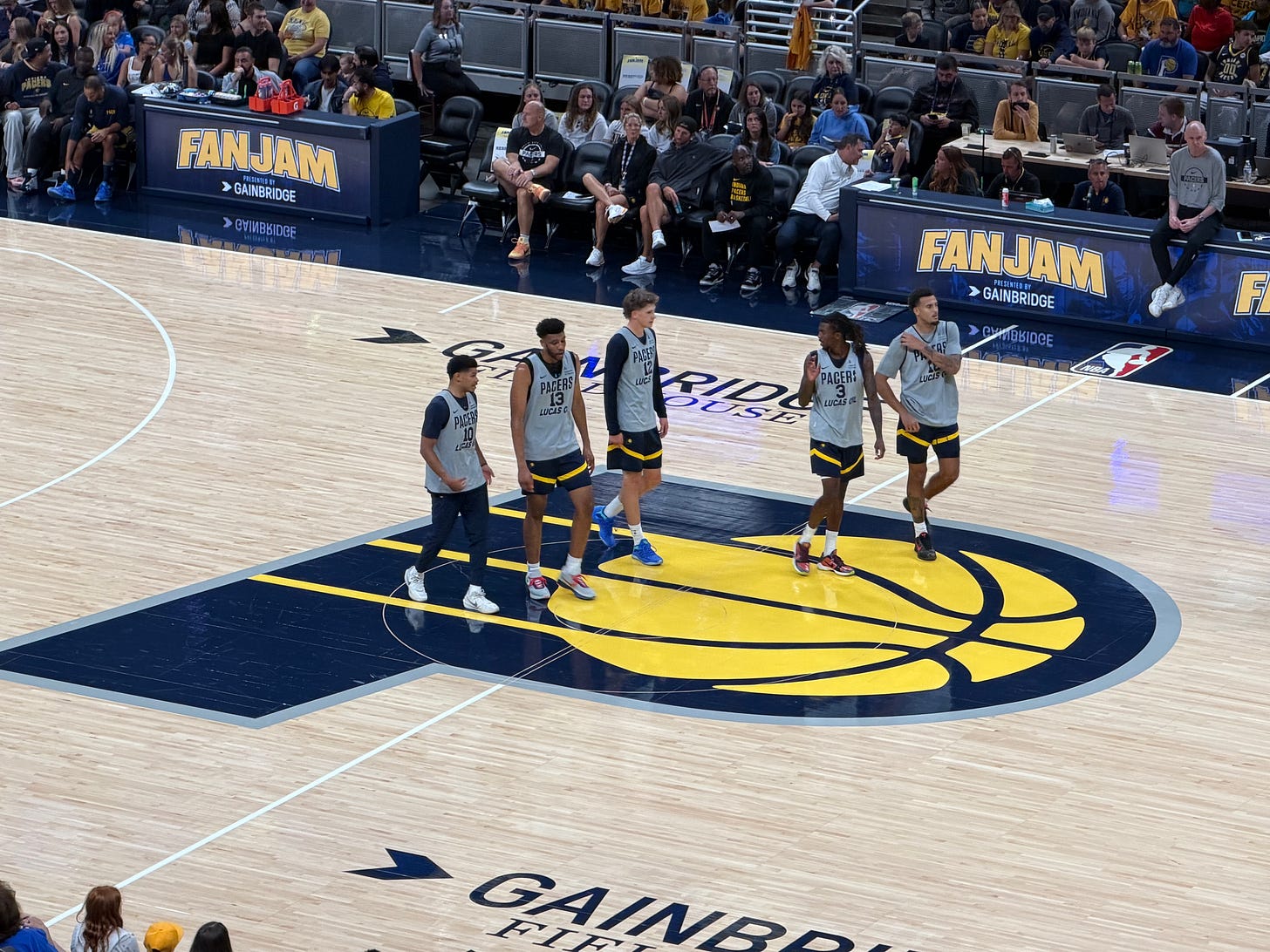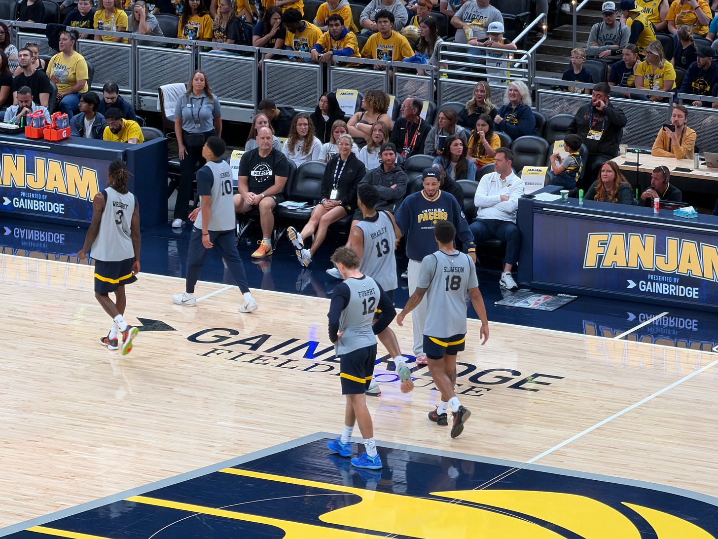 The Indiana Pacers opened their doors to Gainbridge Fieldhouse on Sunday morning for FanJam, their annual fan event. It’s an opportunity for the team to hold an intrasquad scrimmage after a week of training camp.