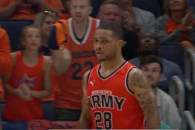 It was Boeheim’s Army, mostly filled with players from Syracuse University, against Team 23. Playing with the Elam Ending, where the first team to 69 wins in this instance, Sykes used a crossover to get past the defender in the backcourt and then pulled up from the right arc.