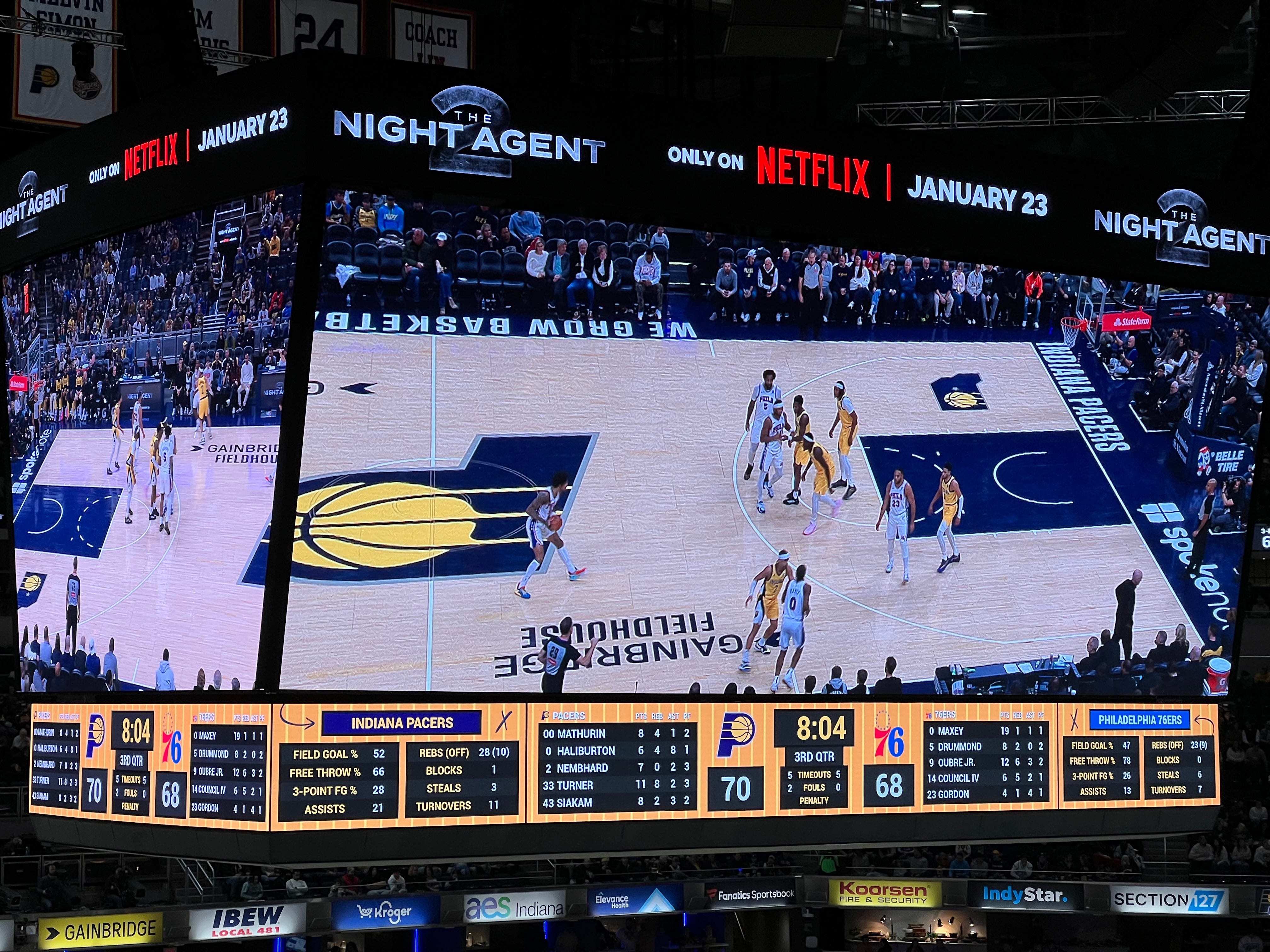 At the second timeout, eight minutes into the game, the lights inside Gainbridge Fieldhouse dimmed and a special promotional video appeared on the giant video screen for the sellout crowd (17,274) enjoying the game.