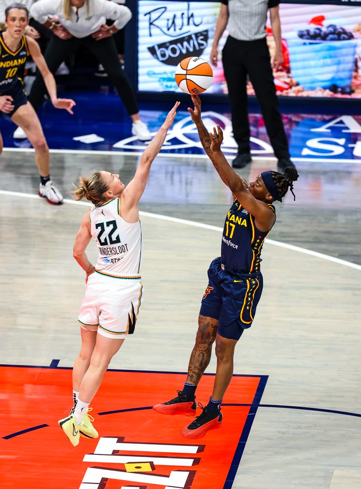 Check out 65 photos from the Indiana Fever’s 102-66 loss to the New York Liberty Thursday night at Gainbridge Fieldhouse.