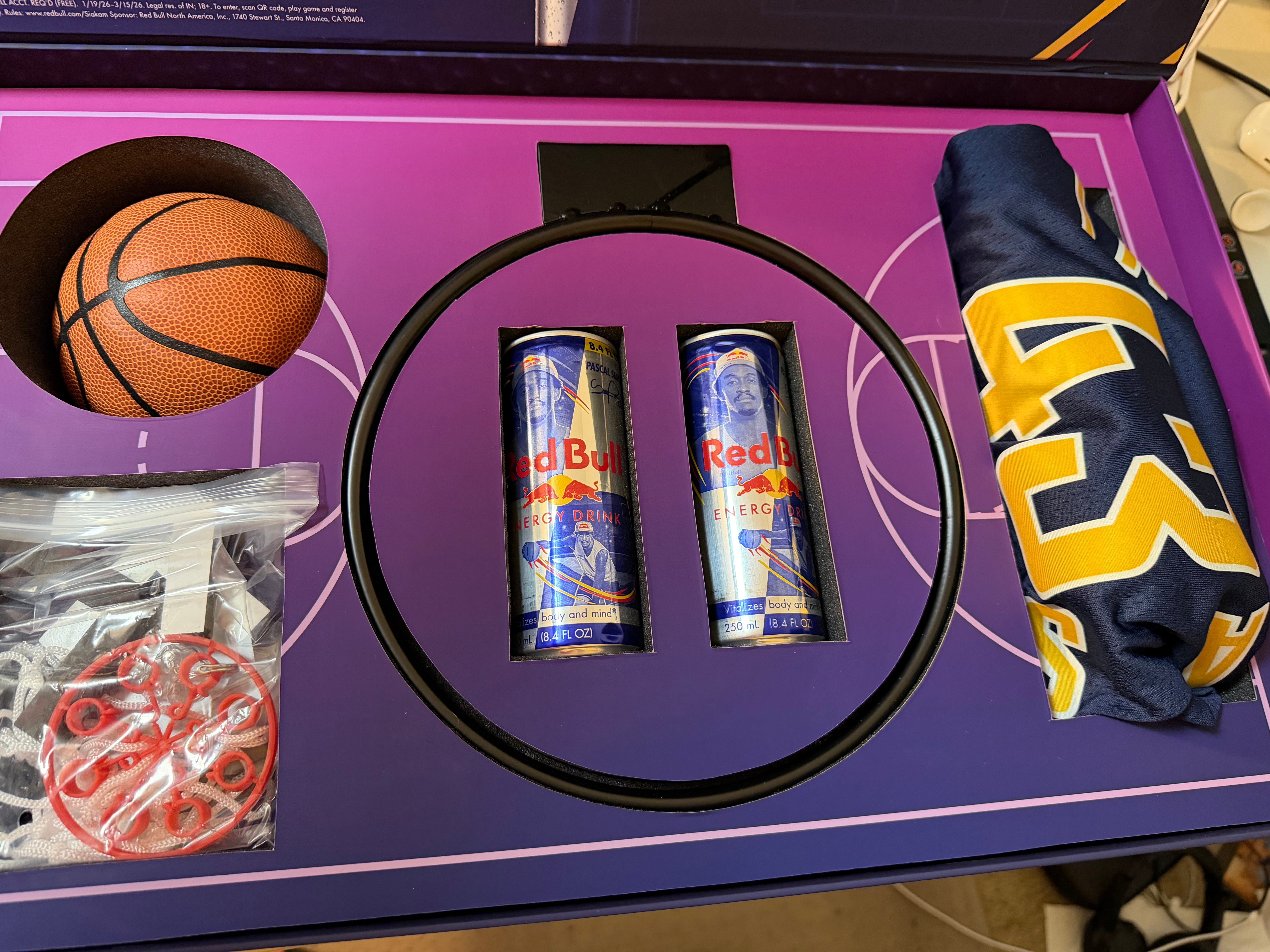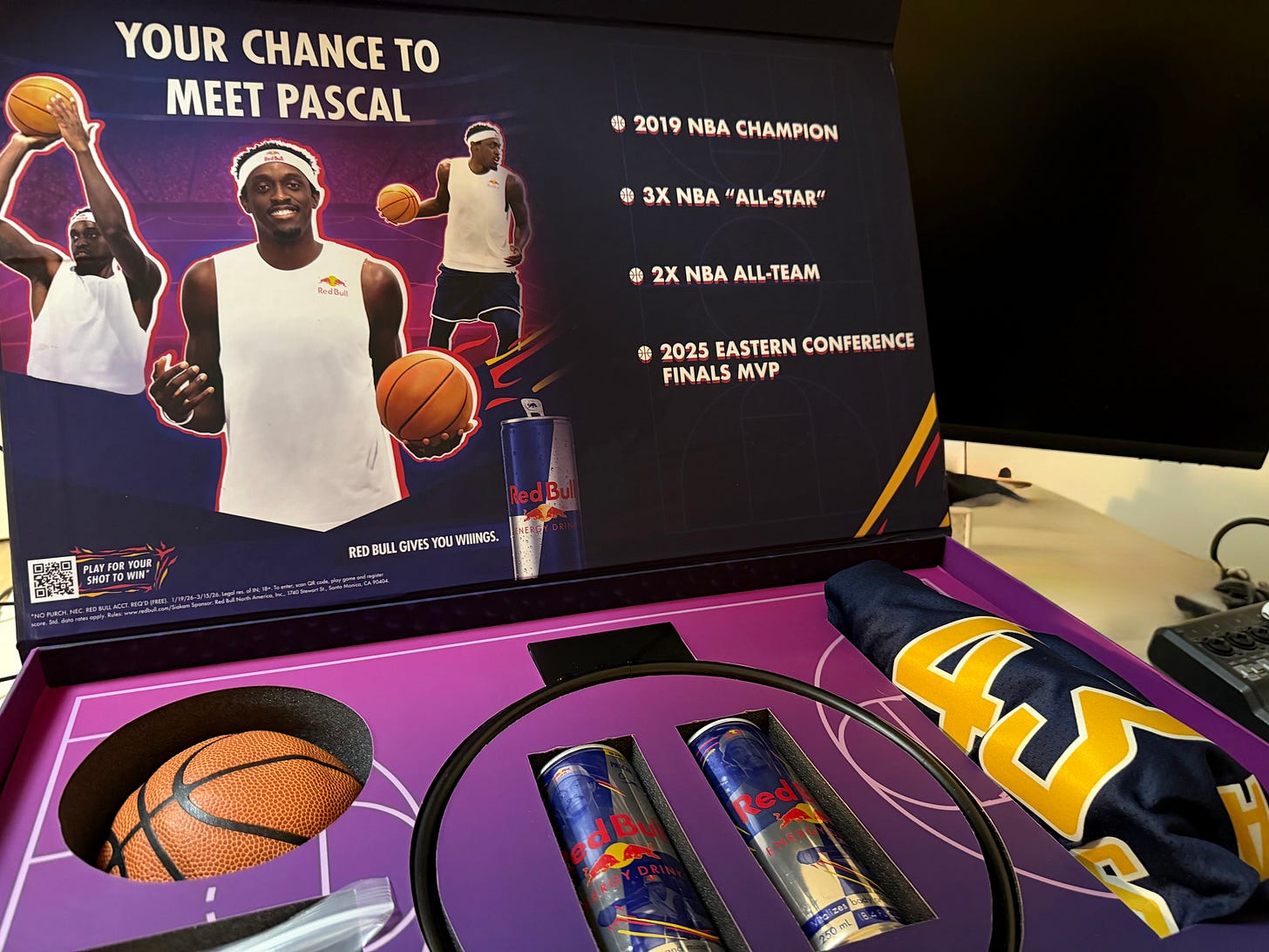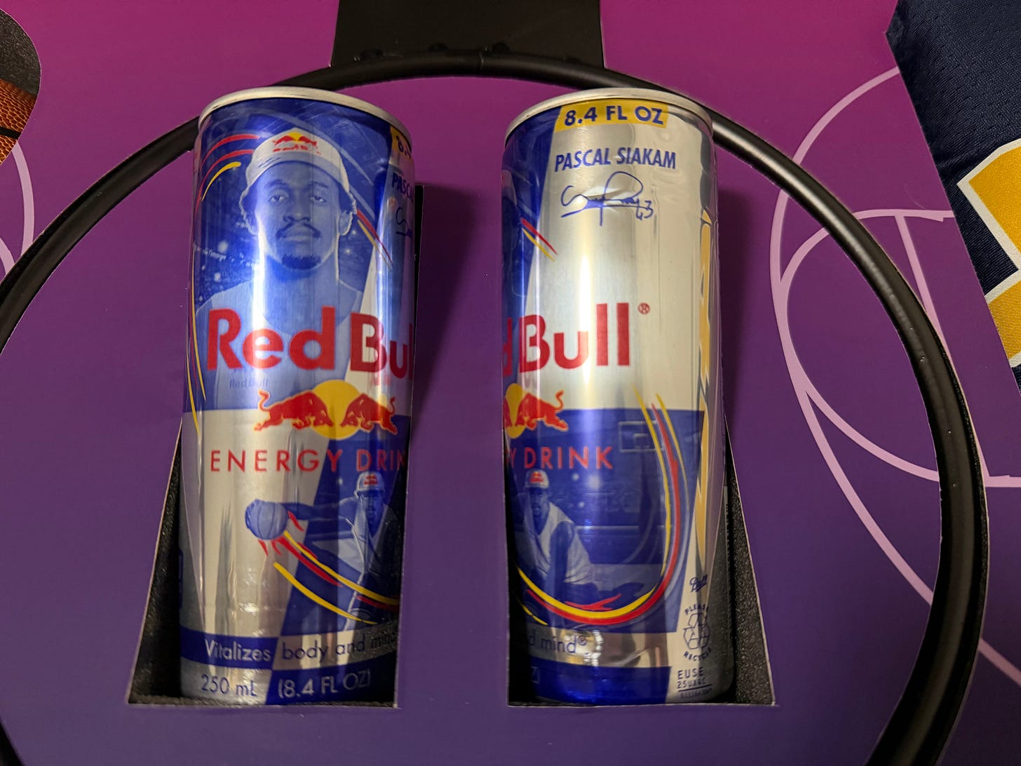 The energy drink company is celebrating the season Pacers forward Pascal Siakam is having by featuring him on the front of a limited-edition can, complete with his signature. Along with the customized can, Red Bull sent a display box that included a Siakam jersey and a mini basketball hoop.