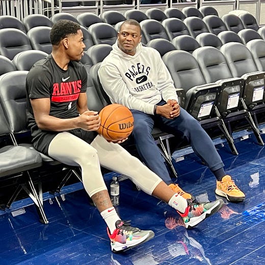Before the tip, Hawks forward John Collins ran over to the Pacers bench to give Lloyd Pierce, the former Hawks head coach, a big hug.