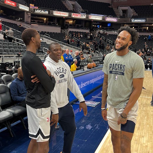 I attended the Fort Wayne Mad Ants game earlier in the day at The Fieldhouse. Despite having two games in less than 24 hours, sitting courtside to support the team was Tyrese Haliburton, Terry Taylor and James Johnson.