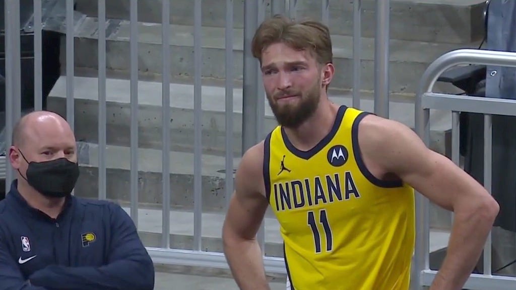 Domantas Sabonis’ streak comes to an end. After playing (and starting) in the first 47 games of the season, he will miss the Pacers’ game Saturday night in San Antonio (9:00 p.m. ET).