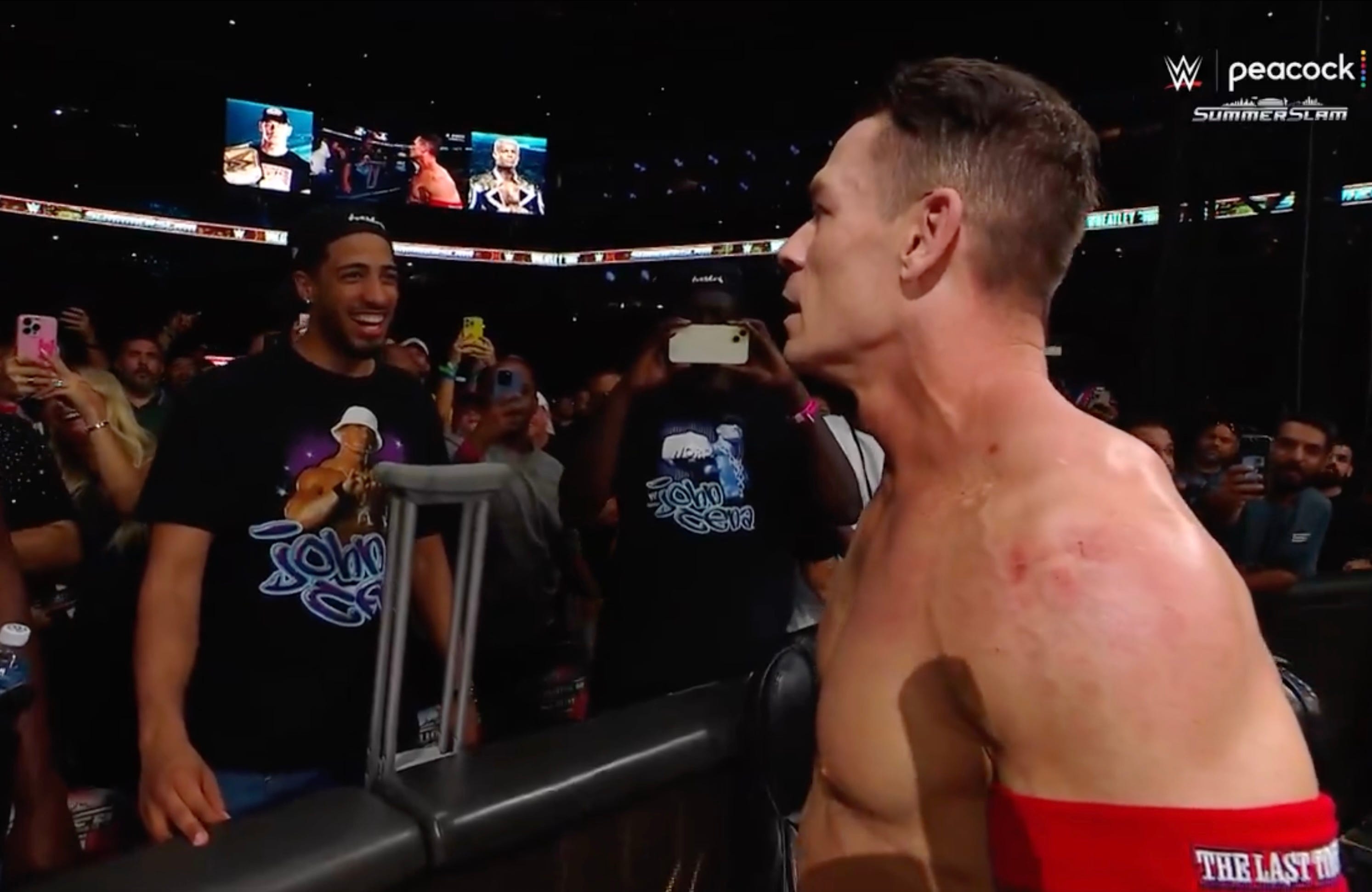 Haliburton and family members sat ringside, and John Cena even got him involved — by taking one of his crutches to use during a match.