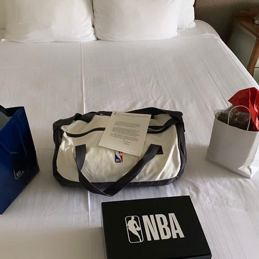 After check in, they were then required to quarantine for 48 hours inside their rooms (with a nice balcony). That gave them time to settle in and make it their own, and explore the gifts left behind by the NBA — snacks, an Amazon Fire TV stick, a portable speaker, books, sanitizing products, instructions on how to use their newly-created app and much more.