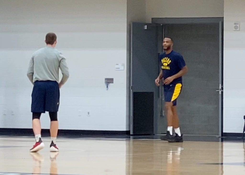 Wearing his team-issued practice shorts and a navy Pacers t-shirt, Warren completed spot shooting to end the day. He sh…