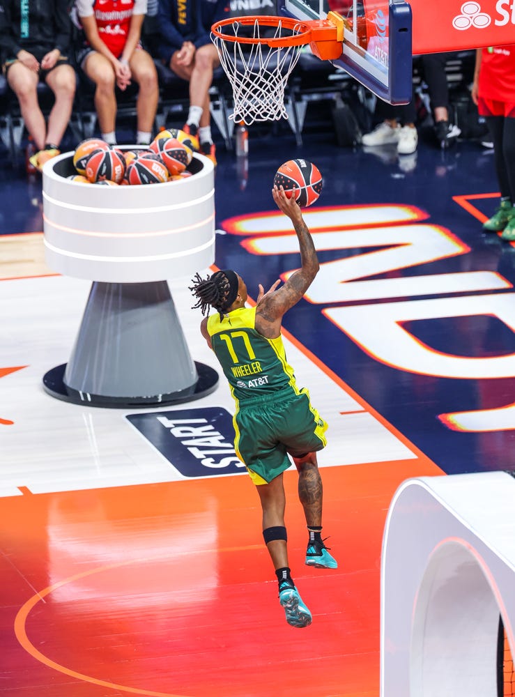 Natasha Cloud edged former Fever guard Erica Wheeler, who is now with the Seattle Storm, to win the Skills Challenge (even though Cloud didn’t make a 3-pointer in the final round).