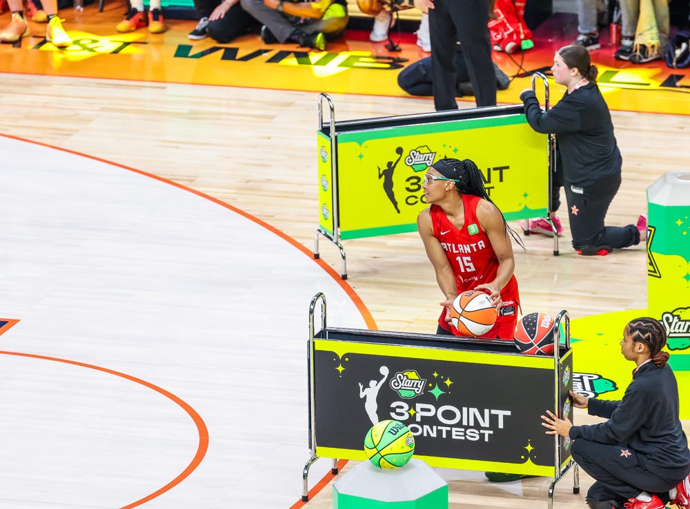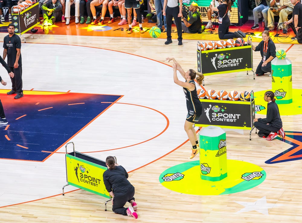 Then, Sabrina Ionescu kept Allisha Gray from running it back with the 3-point title, en route to Ionescu’s second 3-point title.